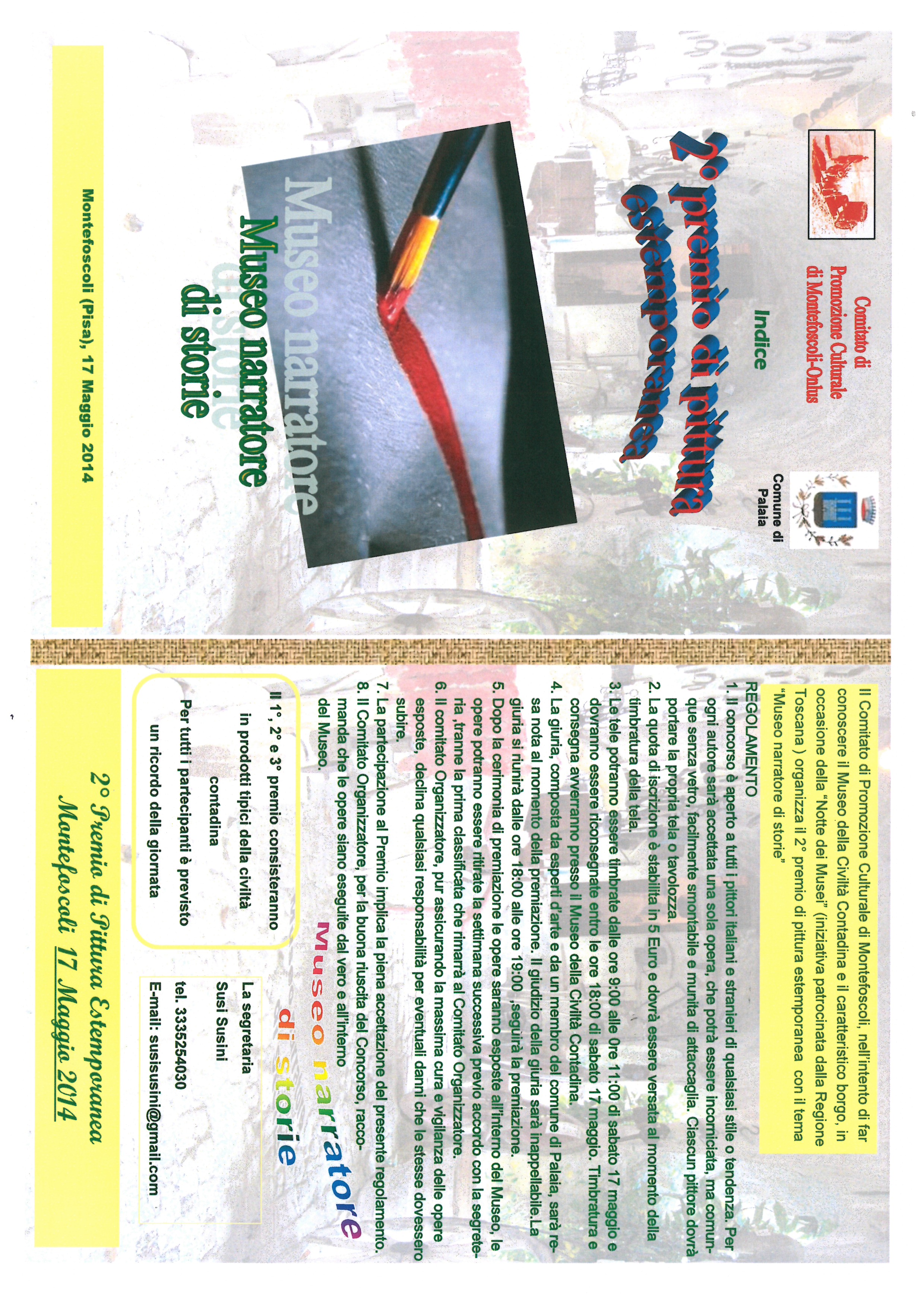 IL COMITATO PROMOZIONE CULTURALE, NELL'INTENTO DI FAR CONOSCERE IL MUSEO DELLA CIVILTA' CONTADINA E IL CARATTERISTICO BORGO, IN OCCASIONE DELLA NOTTE DEI MUSEI ORGANIZZA IL 2° PREMIO DI PITTURA ESTEMPORANEA CON IL TEMA " MUSEO NARRATORE DI STORIE"
