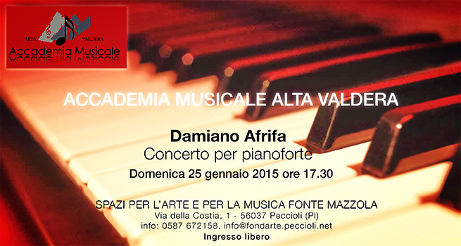 ore 1730 domenica 25 gennaio, concerto per pianoforte a Peccioli , Spazi per l'arte e per la musica, via della Costia, 1.Ingresso libero.
