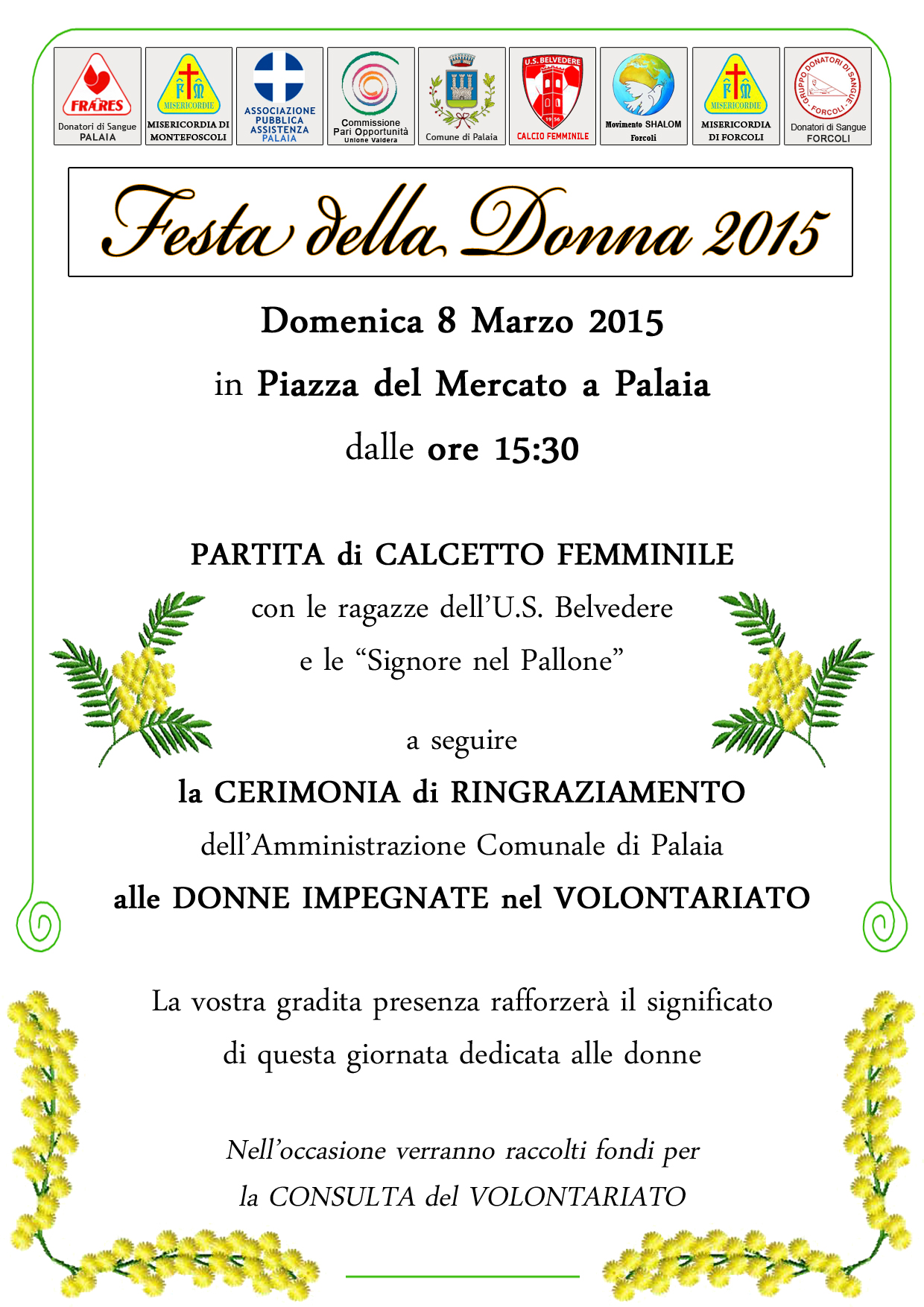 A SEGUIRE CERIMONIA DI RINGRAZIAMENTO DELL'AMMINISTARZIONE COMUNALE DI PALAIA A TUTTE LE DONNE IMPEGNATE NEL VOLONTARIATO.