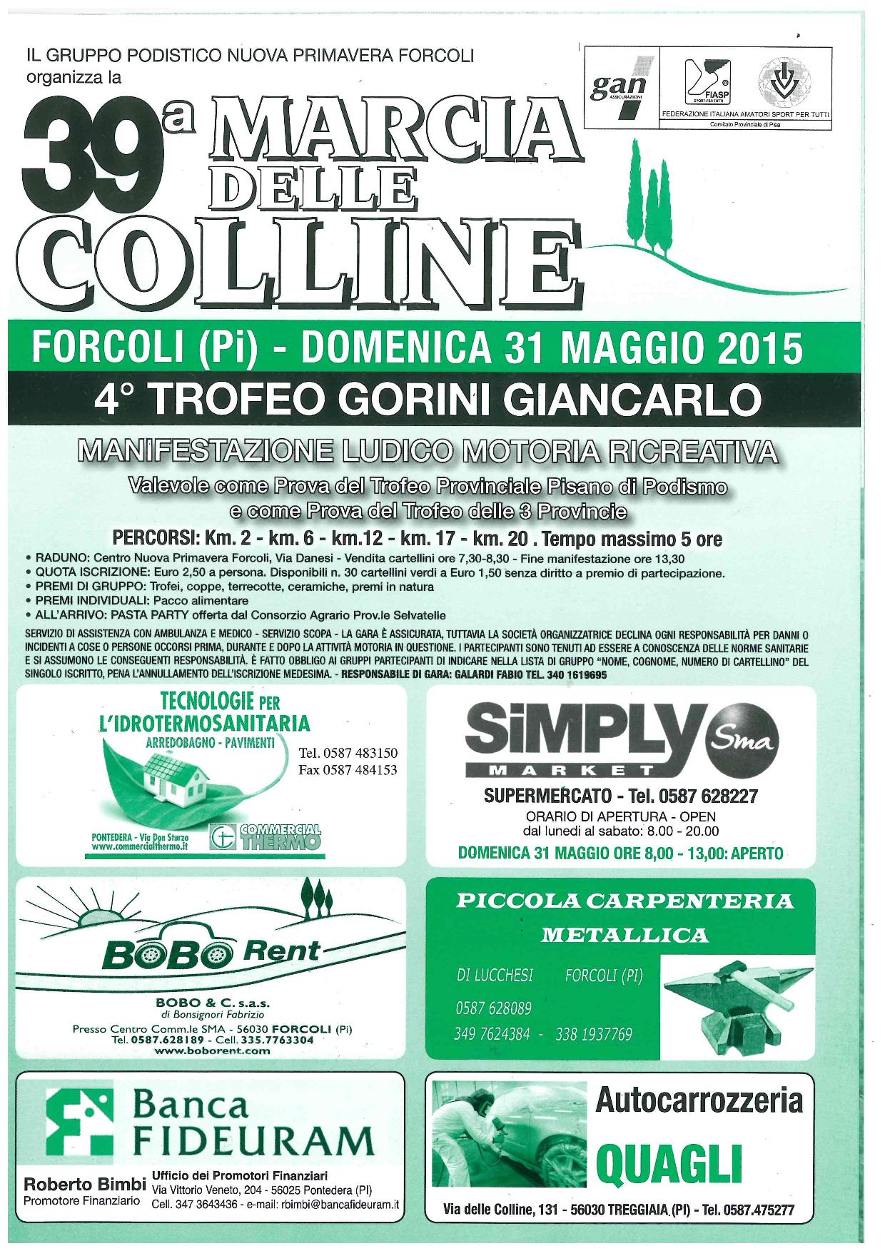 Il Gruppo Podistico Nuova Primavera di Forcoli organizza la 39° MARCIA DELLE COLLINE