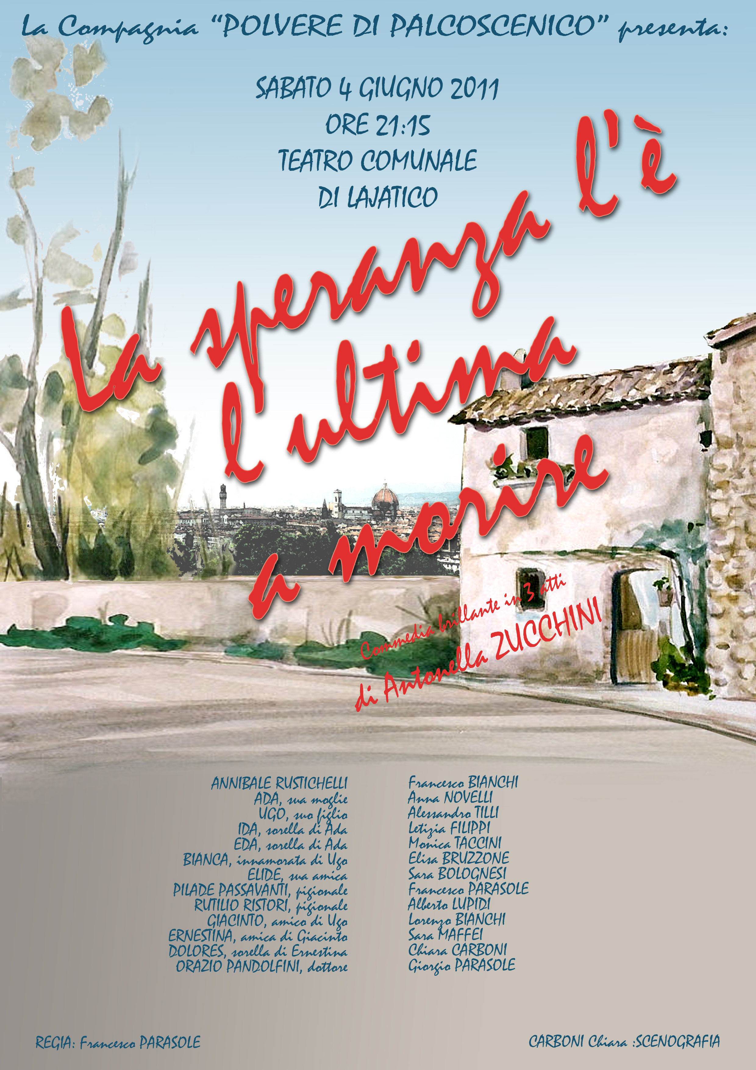 LA COMPAGNIA POLVERE DI PALCOSCENICO PRESENTA , SABATO 4 GIUGNO 2011 ORE 21.15 AL TEATRO COMUNALE DI LAJATICO, LA COMMEDIA "LA SPERANZA L´E´ L´ULTIMA A MORIRE".