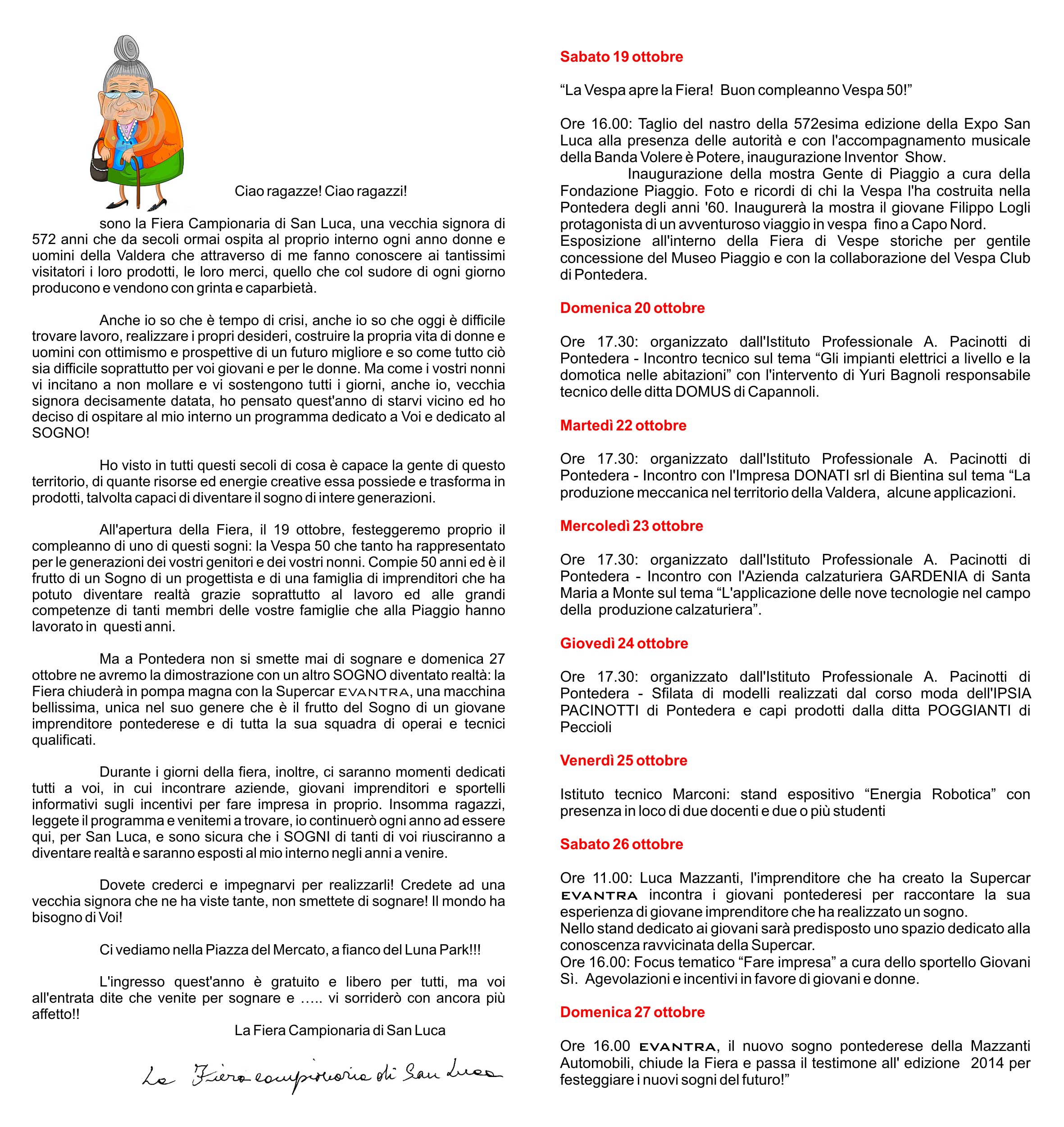 - 27 OTTOBRE 2013 ”FIERA DI S.LUCA” servizi dalle ore 14,45 alle ore 20,30